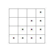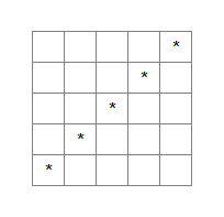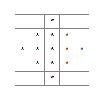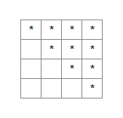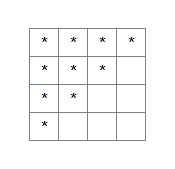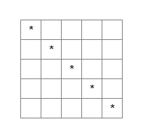 if((i<=j && i<=6-j) || (i>=j && i>=6-j)) System.out.print("*");