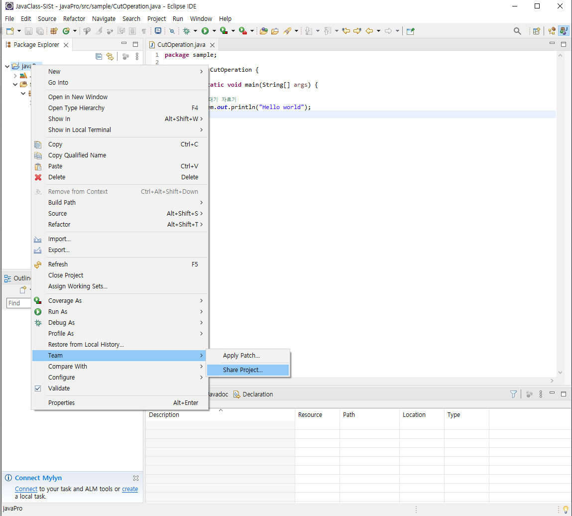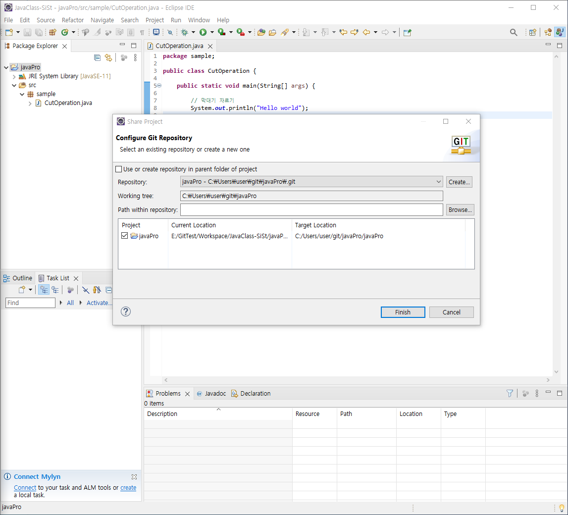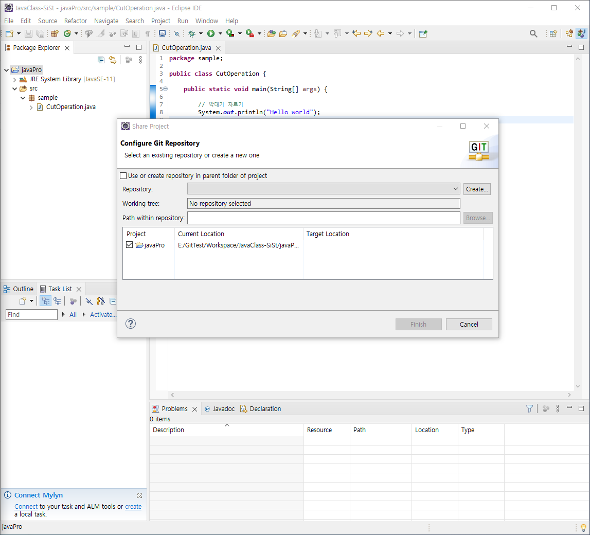 3. 깃 연결할 워크스페이스 오픈
