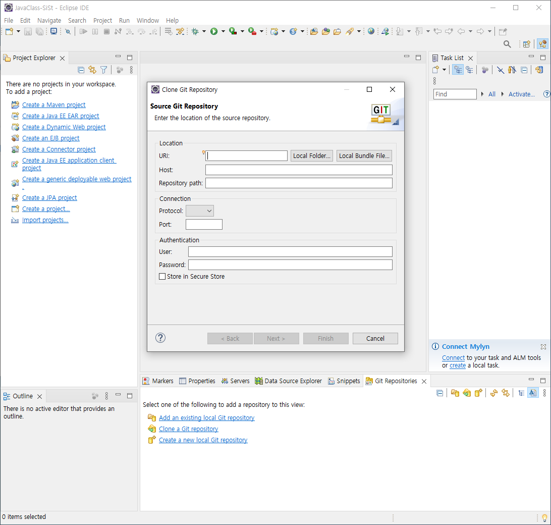 Window > showview > git > git repogitory 클릭