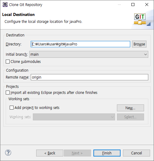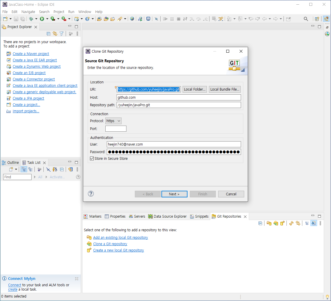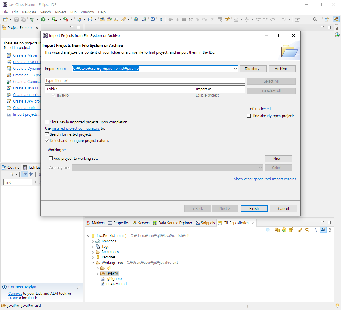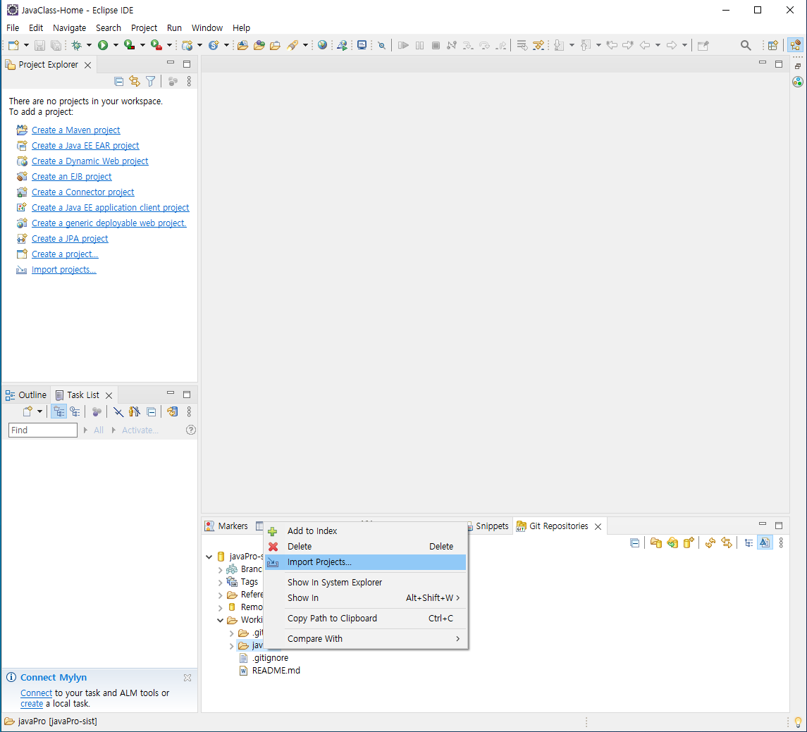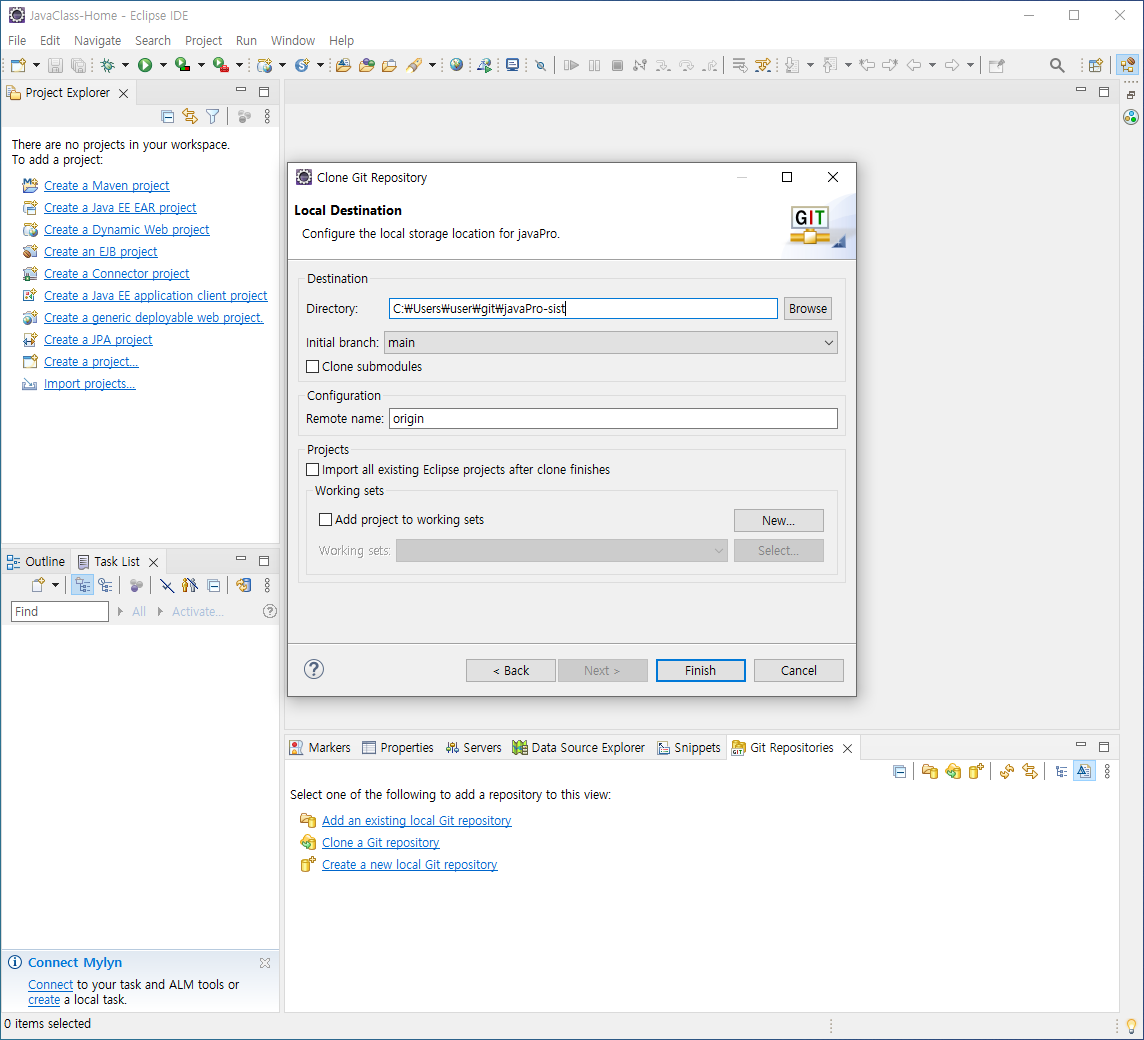 [집 : github에서 프로젝트 가져오기]