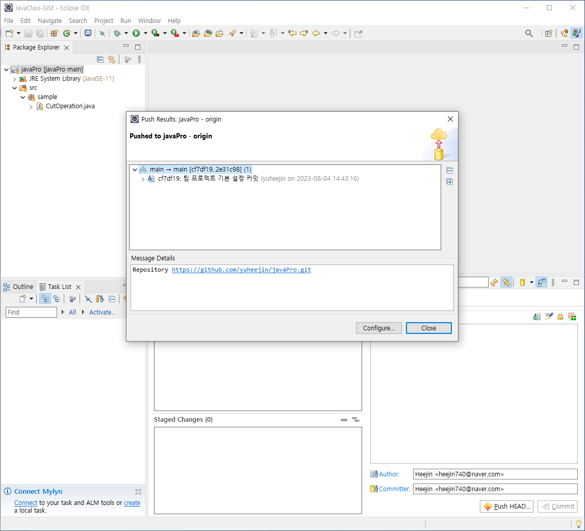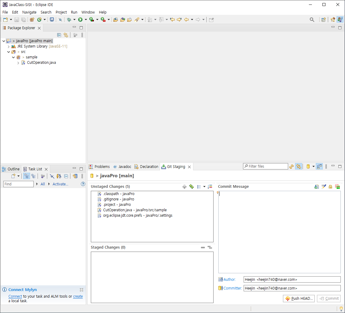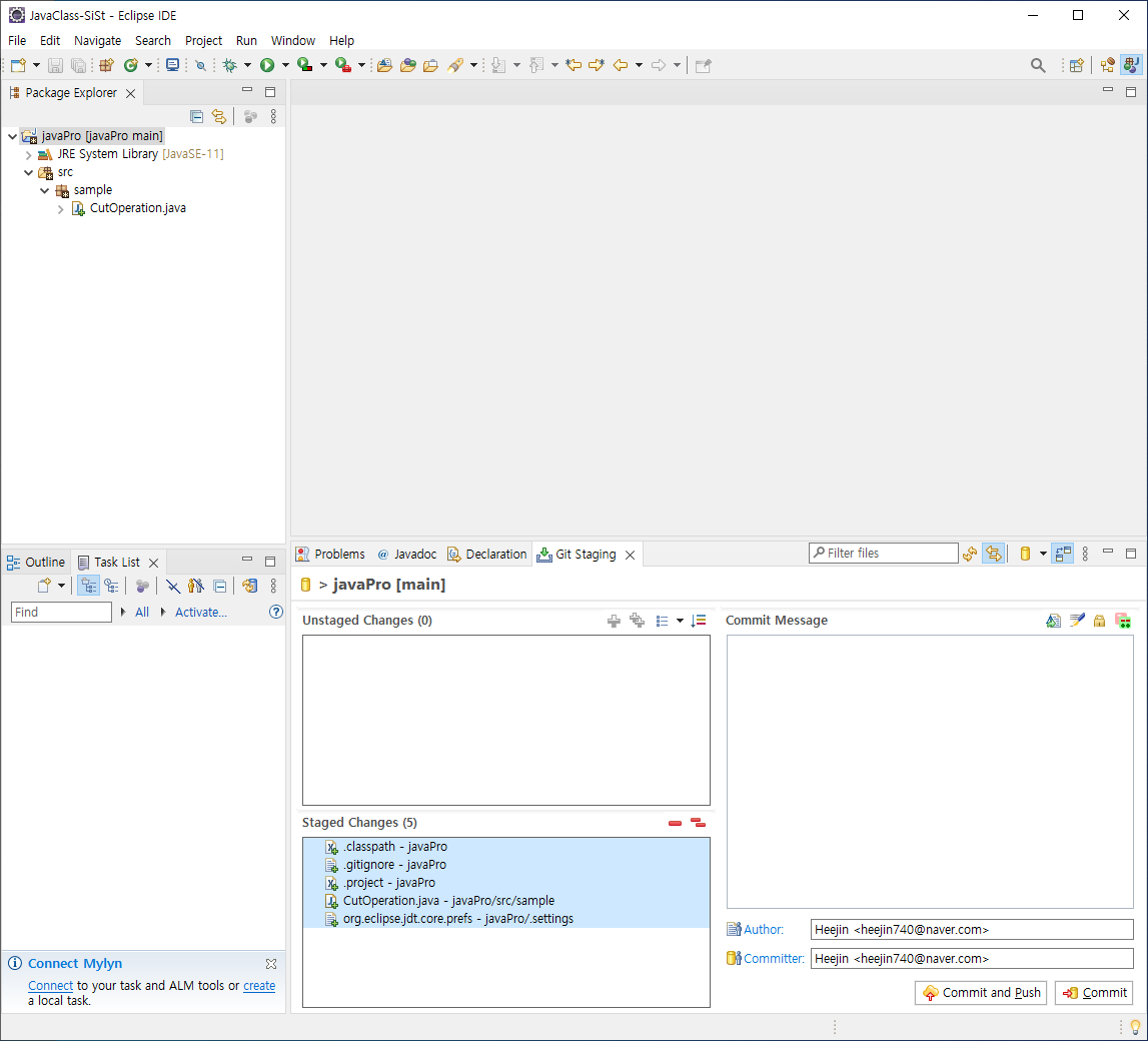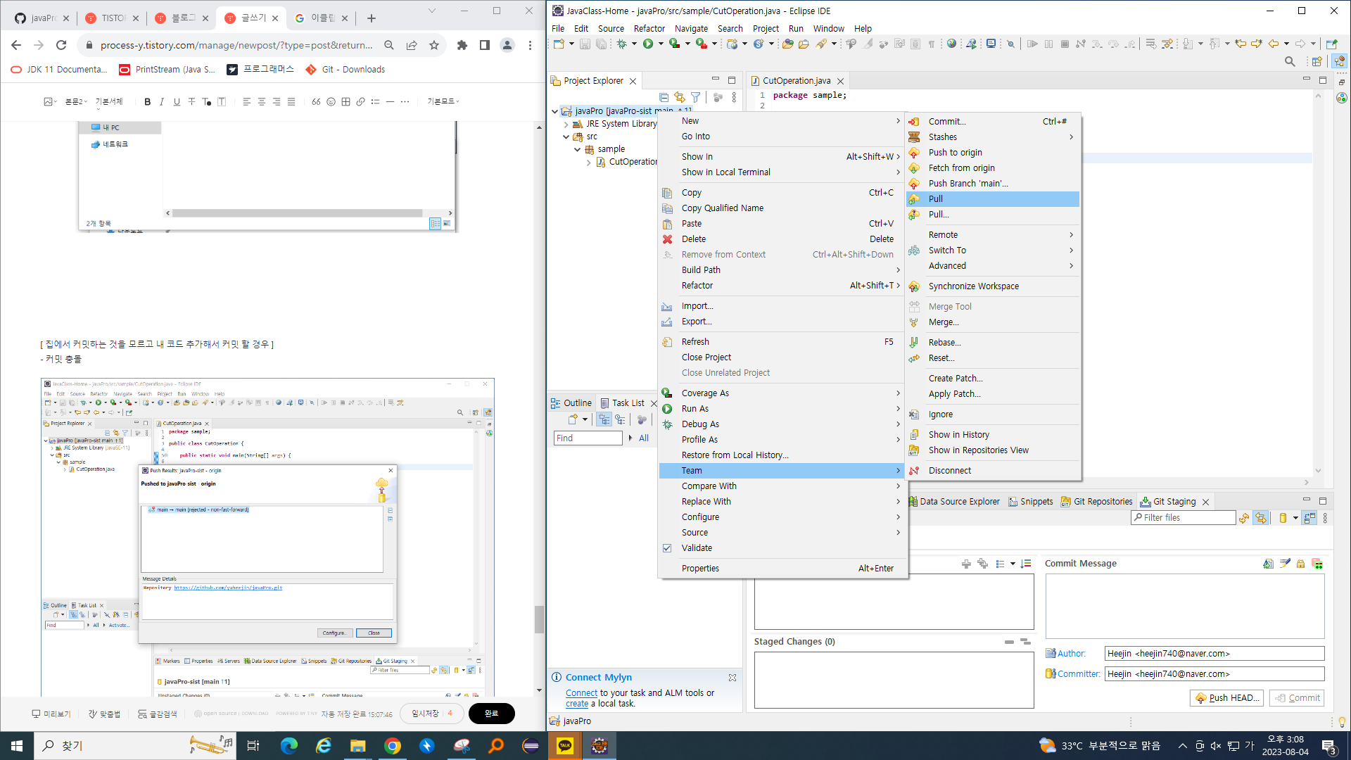 [ 집에서 커밋하는 것을 모르고 내 코드 추가해서 커밋 할 경우 ]